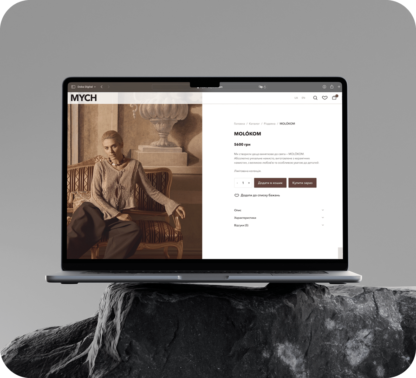 Філософія MYCH — у досконалості деталей і повазі до простору. Тому сайт спроєктований так, щоб “дихати”: жодних зайвих елементів, лише предмети, атмосфера та спокійне дослідження.